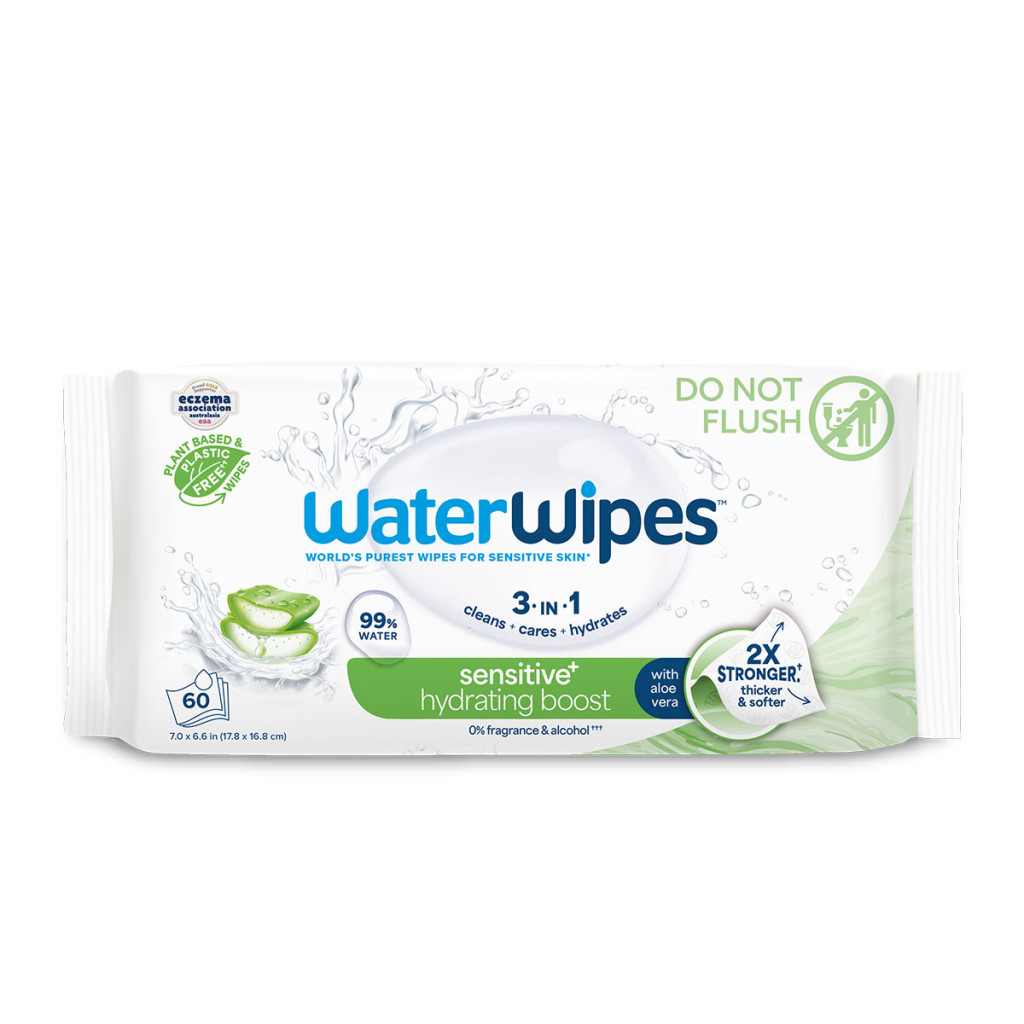 WaterWipes Hydrating Clean Nedves Törlőkendő Aloe Vera és Grapefruitmag Kivonattal 60db - Műanyagmentes, Hidratáló és Gyengéd Bőrtisztítás