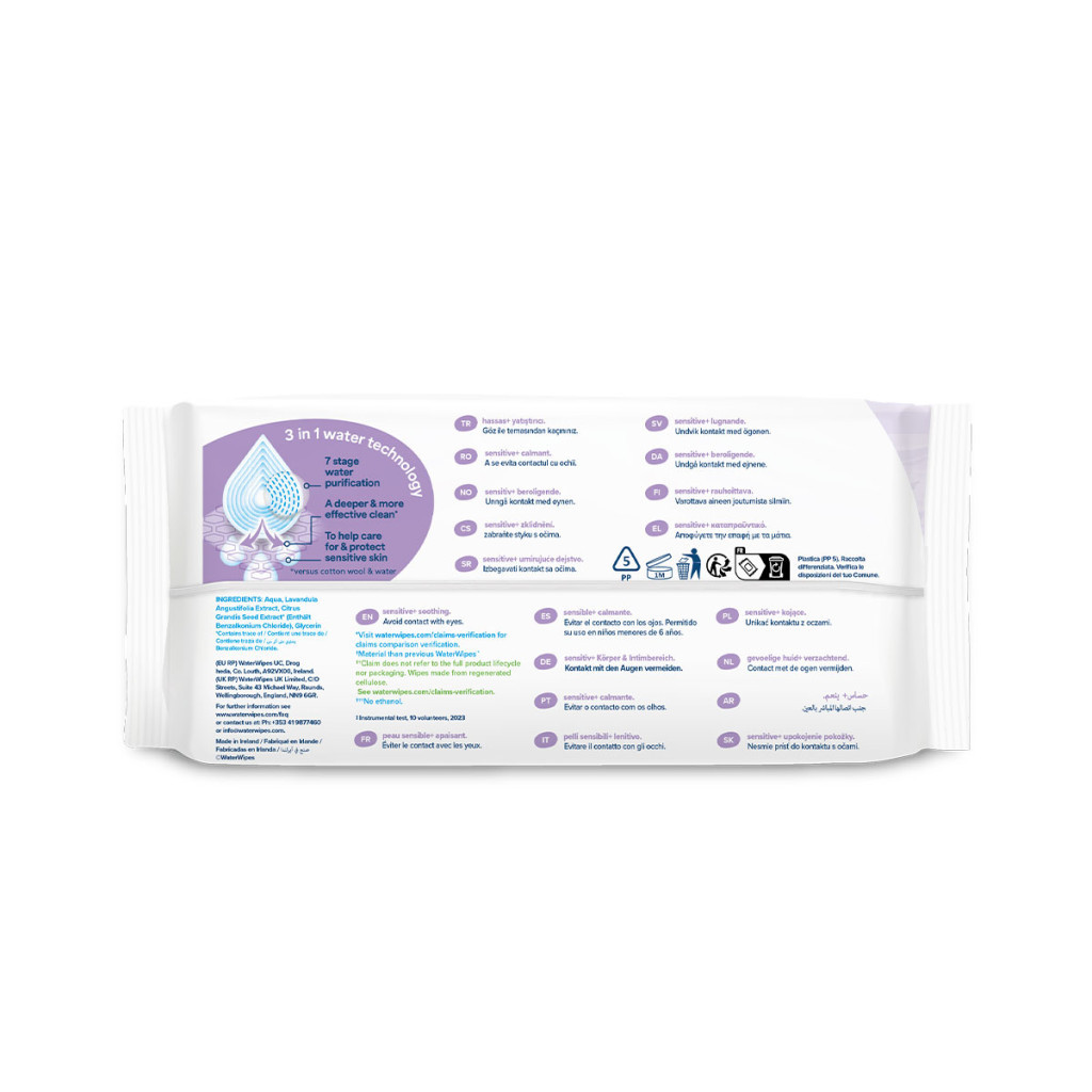 WaterWipes Soothing Clean Nedves Törlőkendő Organikus Levendula és Grapefruitmag Kivonattal 12x60db - Műanyagmentes, Nyugtató és Gyengéd Bőrtisztítás